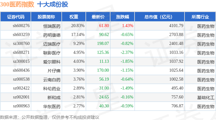 近10日内300医药(399913)指数成份股做了调整,剔除了1只股票。