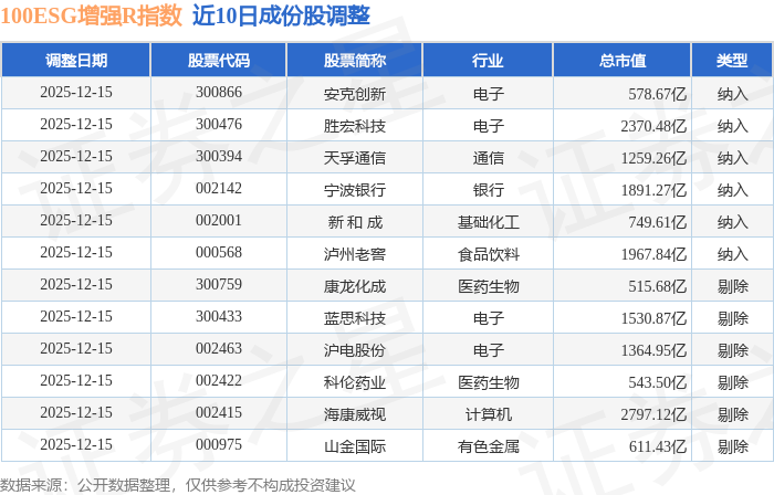 近10日内100ESG增强R(470033)指数成份股做了调整,新纳入了6只股票,剔除了6只股票。
