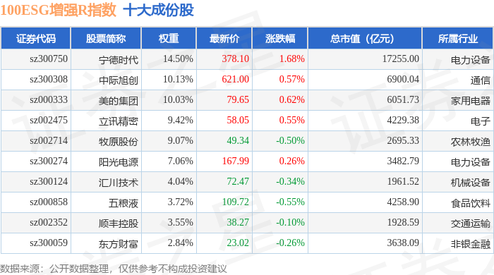 证券之星消息,12月23日,100ESG增强R(470033)指数报收于1765.19点,涨0.31%,成交977.73亿元,换手率0.88%。当日该指数成份股中,上涨的有12家,胜宏科技以3.44%的涨幅领涨,下跌的有28家,中航光电以2.19%的跌幅领跌。