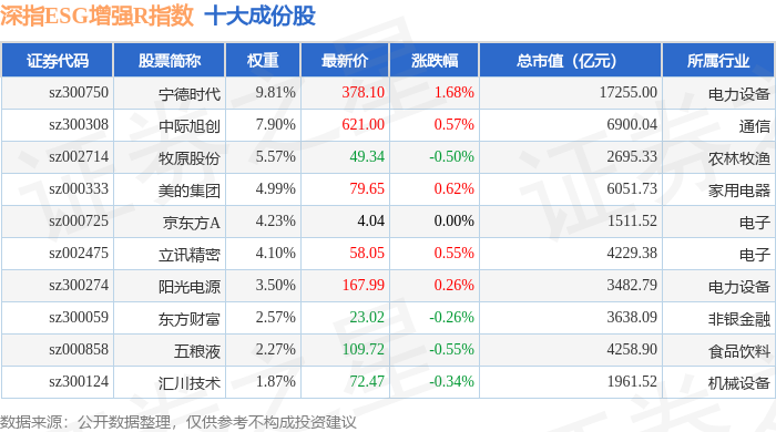 深指ESG增强R(470032)指数十大成份股详情如下: