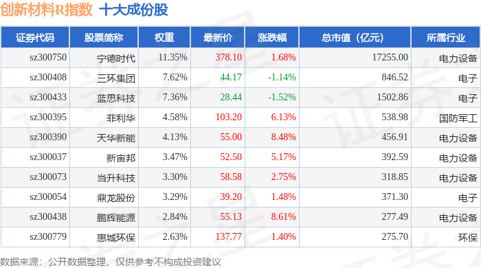 近10日内创新材料R(470039)指数成份股做了调整,新纳入了5只股票,剔除了5只股票。