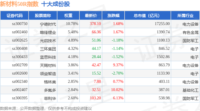 近10日内新材料50R(470042)指数成份股做了调整,新纳入了1只股票,剔除了1只股票。