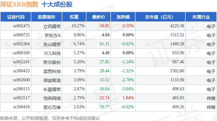 深证XRR(470046)指数十大成份股详情如下: