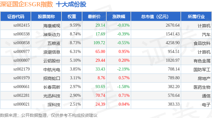 深证国企ESGR(470055)指数十大成份股详情如下: