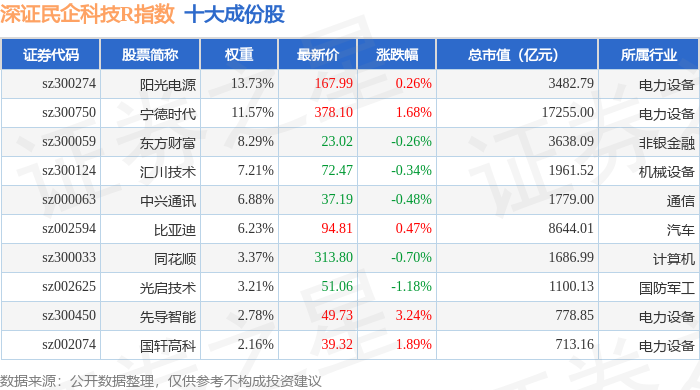 深证民企科技R(470059)指数十大成份股详情如下: