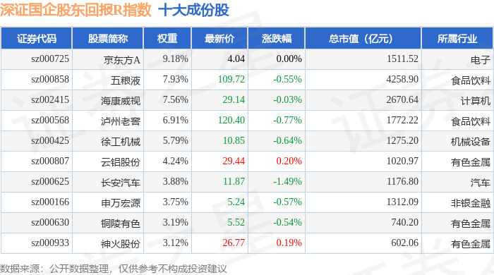 深证国企股东回报R(470064)指数十大成份股详情如下:
