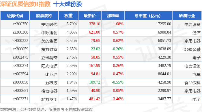深证优质信披R(470065)指数十大成份股详情如下:
