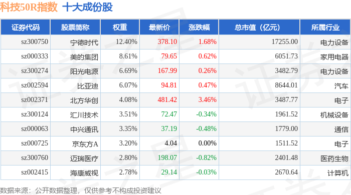 科技50R(470080)指数十大成份股详情如下: