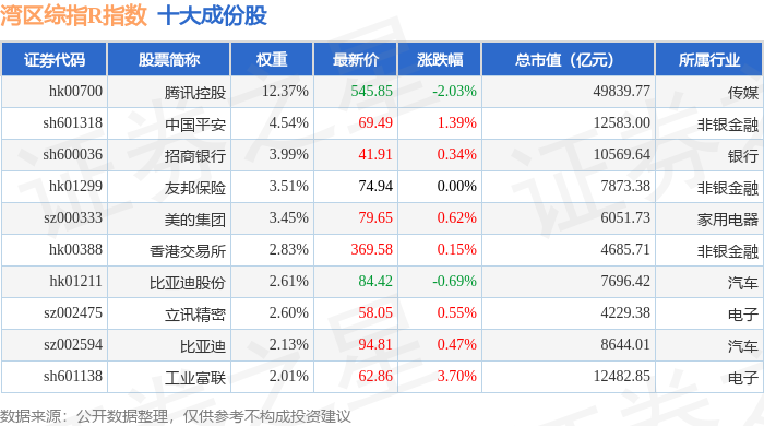 证券之星消息,12月23日,湾区综指R(480003)指数报收于3856.99点,涨0.01%,成交1959.27亿元,换手率0.67%。当日该指数成份股中,上涨的有126家,英维克以10.0%的涨幅领涨,下跌的有183家,越疆以8.08%的跌幅领跌。