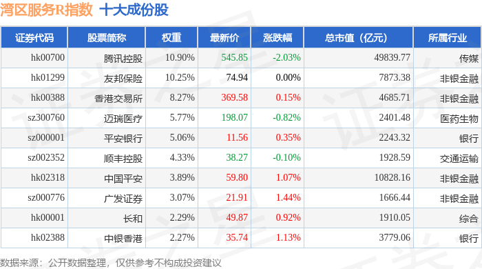 近10日内湾区服务R(480011)指数成份股做了调整,新纳入了1只股票,剔除了2只股票。