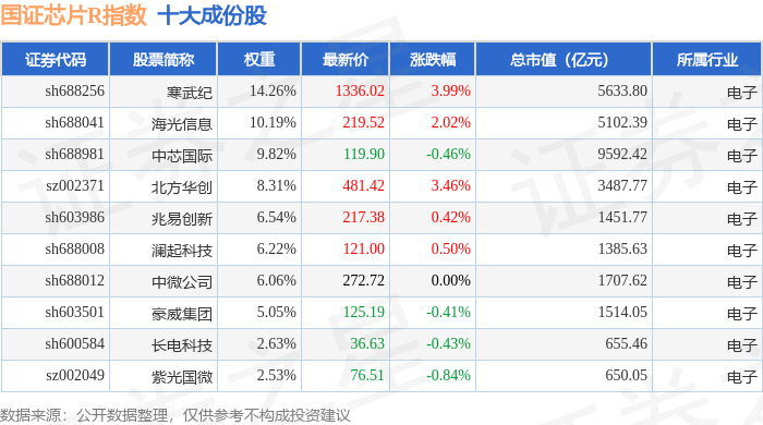 近10日内国证芯片R(480017)指数成份股做了调整,新纳入了1只股票,剔除了1只股票。