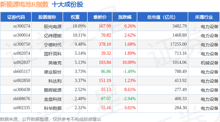 近10日内新能源电池R(480027)指数成份股做了调整,新纳入了5只股票,剔除了5只股票。