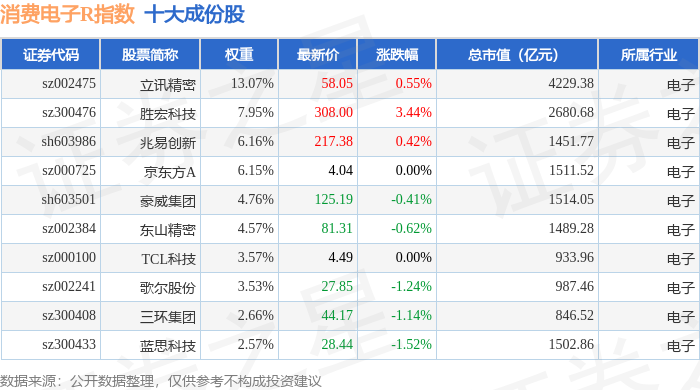 近10日内消费电子R(480030)指数成份股做了调整,新纳入了1只股票,剔除了1只股票。
