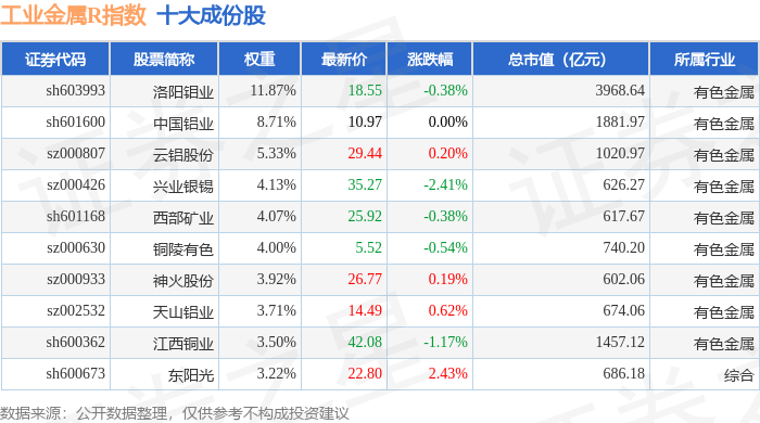 近10日内工业金属R(480043)指数成份股做了调整,新纳入了2只股票,剔除了2只股票。