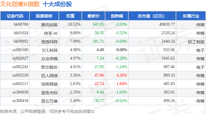 近10日内文化创意R(480046)指数成份股做了调整,新纳入了2只股票,剔除了6只股票。