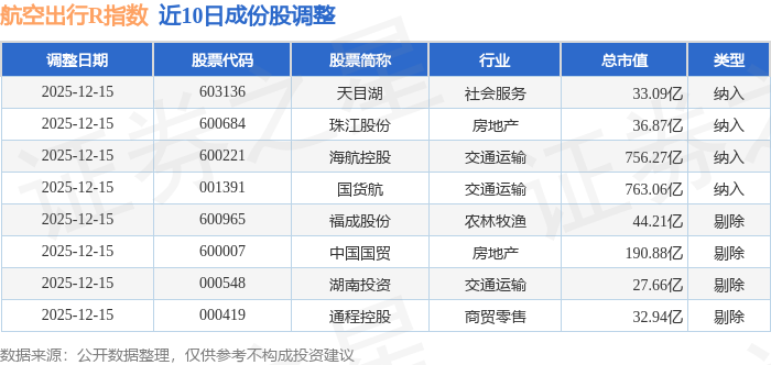 近10日内航空出行R(480059)指数成份股做了调整,新纳入了4只股票,剔除了4只股票。