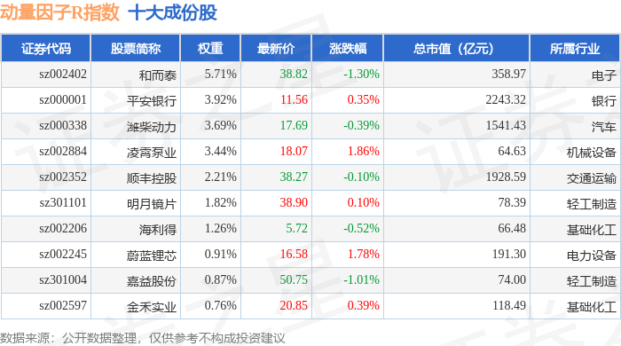 证券之星消息,12月23日,动量因子R(480057)指数报收于2892.47点,跌0.65%,成交160.88亿元,换手率1.06%。当日该指数成份股中,上涨的有15家,凌霄泵业以1.86%的涨幅领涨,下跌的有35家,长盛轴承以3.92%的跌幅领跌。