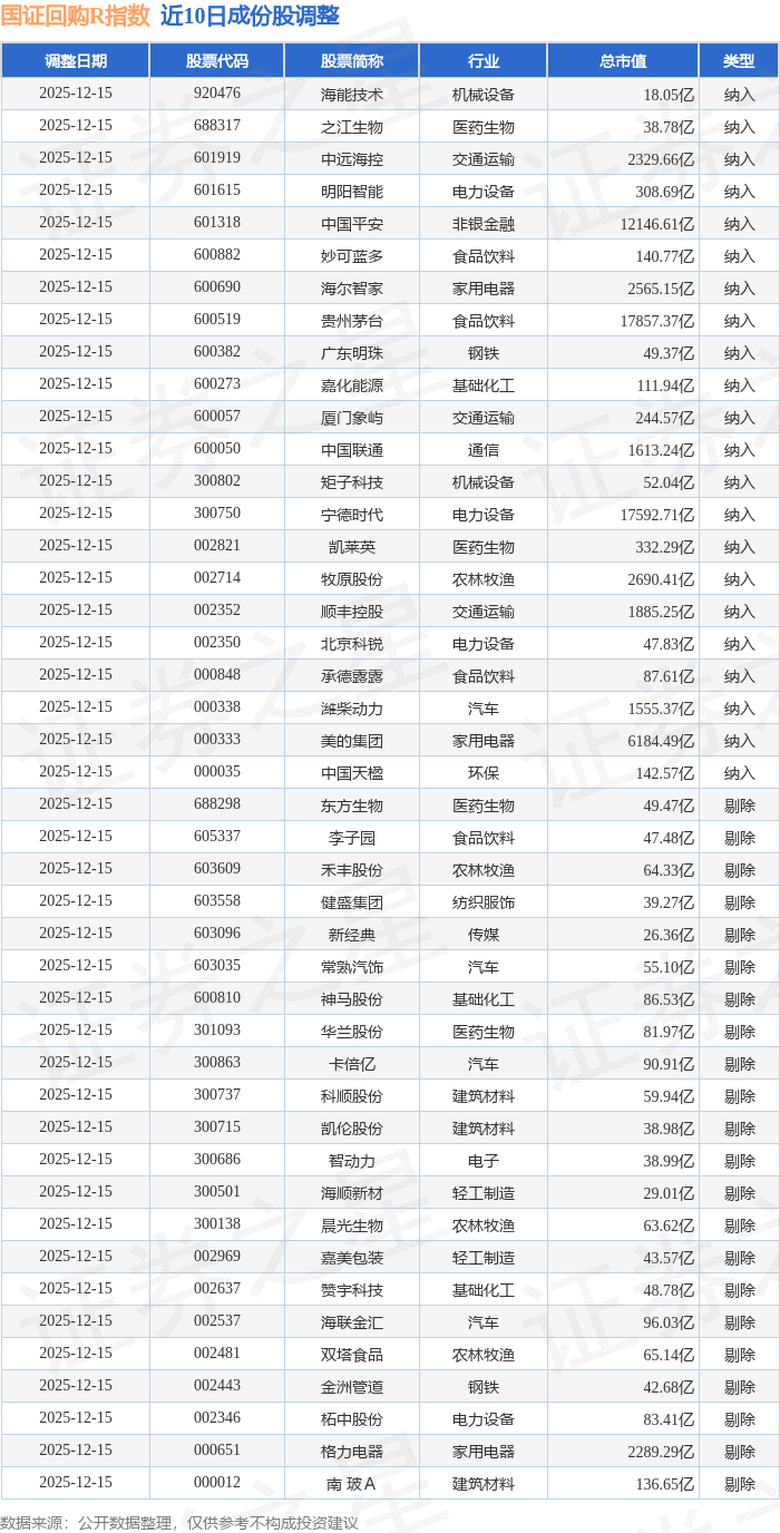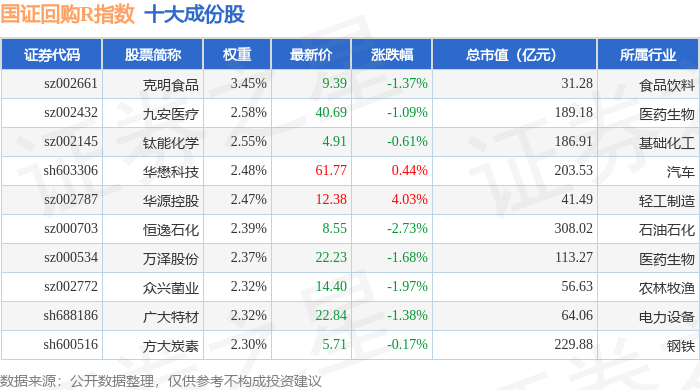 国证回购R(480063)指数十大成份股详情如下:
