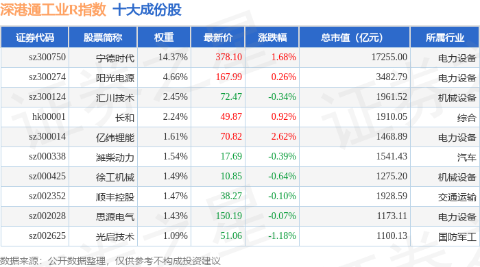 深港通工业R(483017)指数十大成份股详情如下: