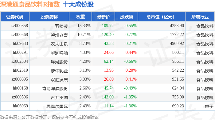 深港通食品饮料R(483065)指数十大成份股详情如下: