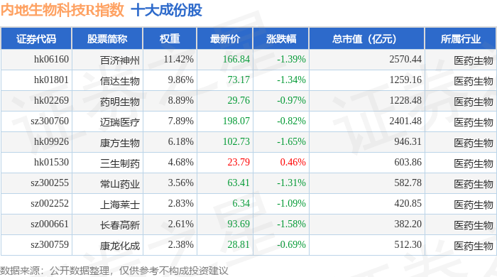 近10日内内地生物科技R(483101)指数成份股做了调整,剔除了4只股票。