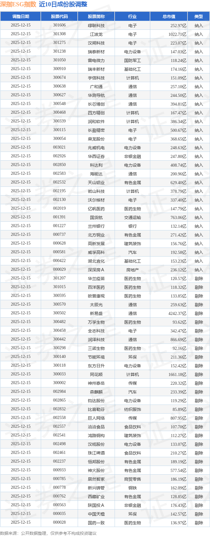 近10日内深指ESG(970026)指数成份股做了调整,新纳入了29只股票,剔除了29只股票。