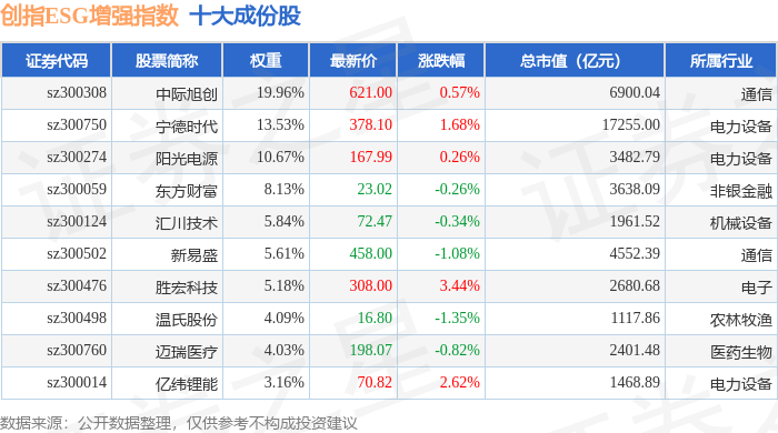 近10日内创指ESG增强(970034)指数成份股做了调整,新纳入了6只股票,剔除了6只股票。
