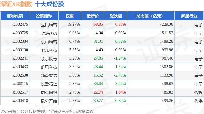 深证XR(970046)指数十大成份股详情如下:
