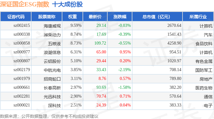 深证国企ESG(970055)指数十大成份股详情如下: