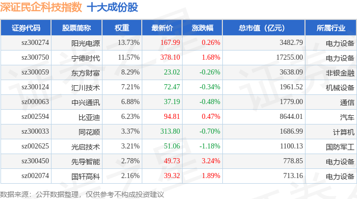 证券之星消息,12月23日,深证民企科技(970059)指数报收于5153.91点,涨0.57%,成交776.98亿元,换手率2.62%。当日该指数成份股中,上涨的有28家,菲利华以6.13%的涨幅领涨,下跌的有22家,上海瀚讯以10.4%的跌幅领跌。