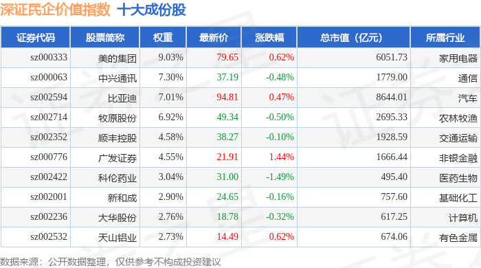 资金流向方面,深证民企价值(970072)指数成份股当日主力资金净流出合计6.63亿元,游资资金净流出合计3.17亿元,散户资金净流入合计9.8亿元。成份股资金流向详情见下表: