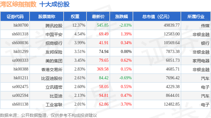 证券之星消息,12月23日,湾区综指(980003)指数报收于2849.78点,涨0.01%,成交1959.27亿元,换手率0.67%。当日该指数成份股中,上涨的有126家,英维克以10.0%的涨幅领涨,下跌的有183家,越疆以8.08%的跌幅领跌。