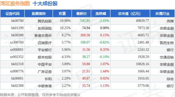 湾区服务(980011)指数十大成份股详情如下: