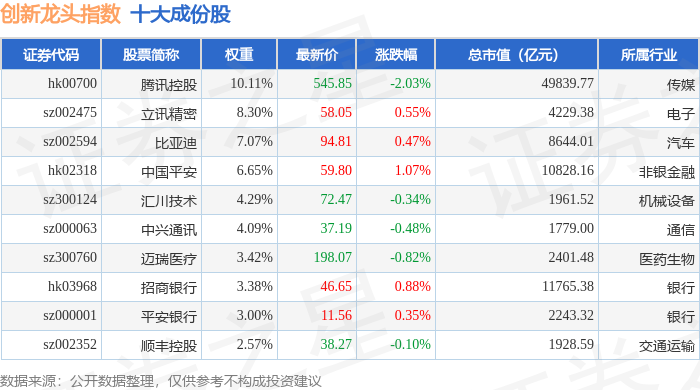 创新龙头(980036)指数十大成份股详情如下: