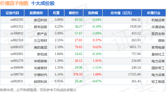 证券之星消息,12月23日,价值因子(980056)指数报收于2612.73点,跌0.79%,成交311.94亿元,换手率0.58%。当日该指数成份股中,上涨的有12家,华明装备以1.91%的涨幅领涨,下跌的有37家,长盛轴承以3.92%的跌幅领跌。