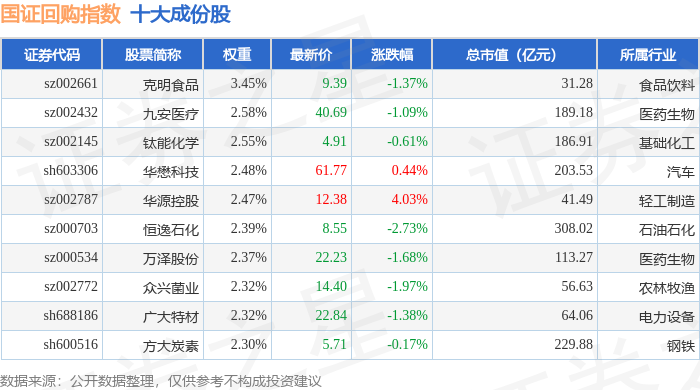 近10日内国证回购(980063)指数成份股做了调整,新纳入了22只股票,剔除了22只股票。