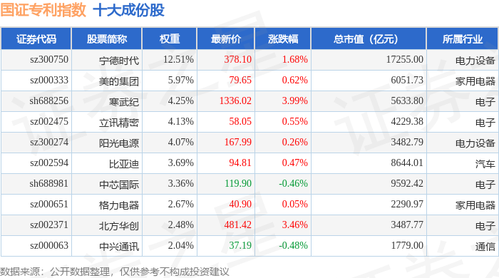 国证专利(980070)指数十大成份股详情如下: