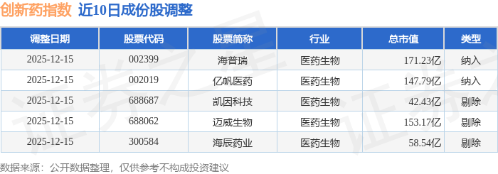近10日内创新药(980086)指数成份股做了调整,新纳入了2只股票,剔除了3只股票。