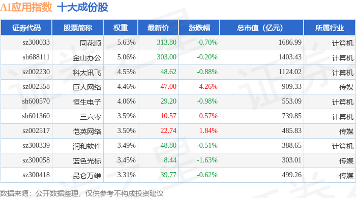 近10日内AI应用(980112)指数成份股做了调整,新纳入了3只股票,剔除了3只股票。