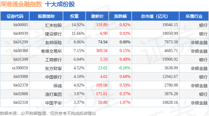 深港通金融(983025)指数十大成份股详情如下: