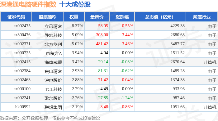 深港通电脑硬件(983043)指数十大成份股详情如下: