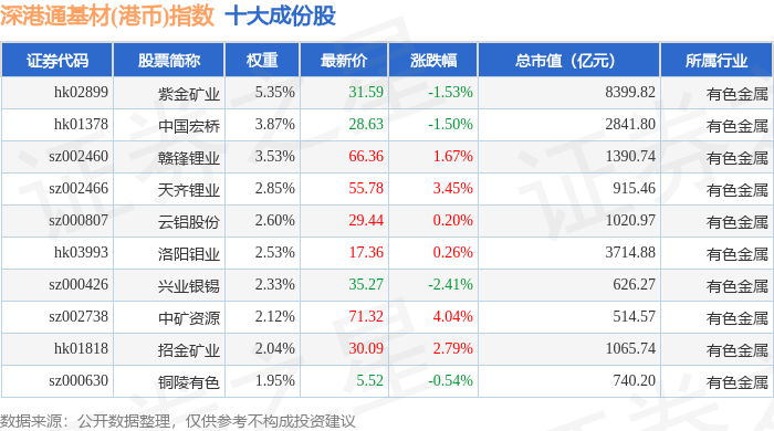 深港通基材(港币)(983062)指数十大成份股详情如下: