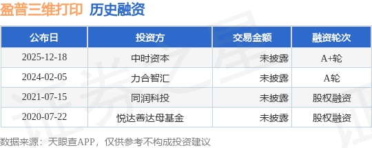 证券之星消息,根据天眼查APP于12月18日公布的信息整理,上海盈普三维打印科技有限公司A+轮融资,融资额未披露,参与投资的机构包括中时资本。