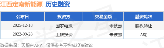 证券之星消息,根据天眼查APP于12月18日公布的信息整理,国家电投集团江西定南新能源有限公司股权转让融资,交易额未披露。