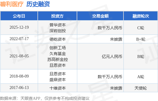 证券之星消息,根据天眼查APP于12月19日公布的信息整理,苏州碧利医疗科技有限公司C轮融资,融资额数千万人民币,参与投资的机构包括普华资本,深岩创投。