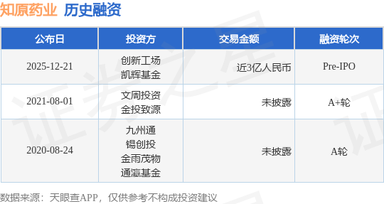 证券之星消息,根据天眼查APP于12月21日公布的信息整理,江苏知原药业股份有限公司Pre-IPO融资,融资额近3亿人民币,参与投资的机构包括创新工场,凯辉基金。