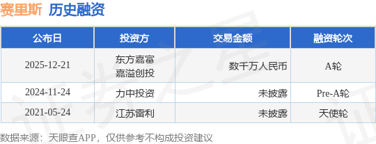 证券之星消息,根据天眼查APP于12月21日公布的信息整理,合肥赛里斯智能传动系统有限公司A轮融资,融资额数千万人民币,参与投资的机构包括东方嘉富,嘉溢创投。