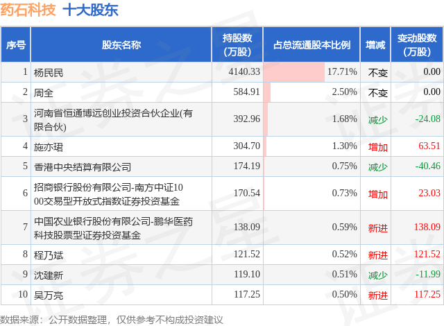 根据药石科技2025年三季报公布的十大股东详情如下: