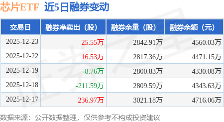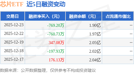 证券之星消息,12月23日,芯片ETF(512760)融资买入1560.93万元,融资偿还2330.13万元,融资净卖出769.2万元,融资余额1.9亿元。