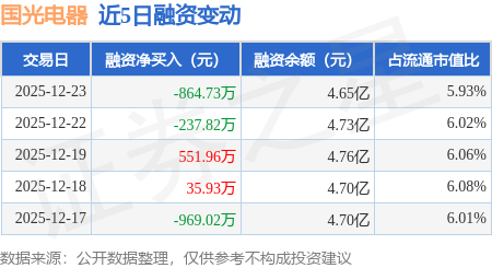 证券之星消息,12月23日,国光电器(002045)融资买入1128.67万元,融资偿还1993.4万元,融资净卖出864.73万元,融资余额4.65亿元。
